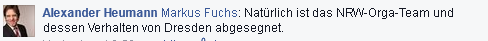 Immerhin bedankt man sich noch bei ihr. Gestern hatte rheinauenschreiber.de bereits darauf hingewiesen, dass Dresden offenbar Bescheid wusste über die Zusammensetzung von PegidNRW – und diese laut Dügida-Anmelder Neumann auch so abgesegnet war.