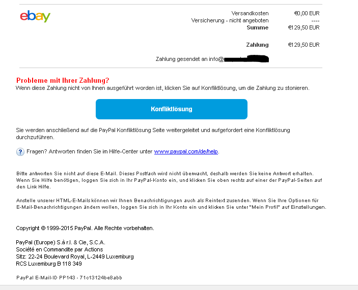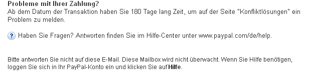 Und damit war die Sache klar. Ich prüfte noch rasch über eine Login auf der Paypal-Seite, dort war alles unauffällig. An der Mail war nix dran.