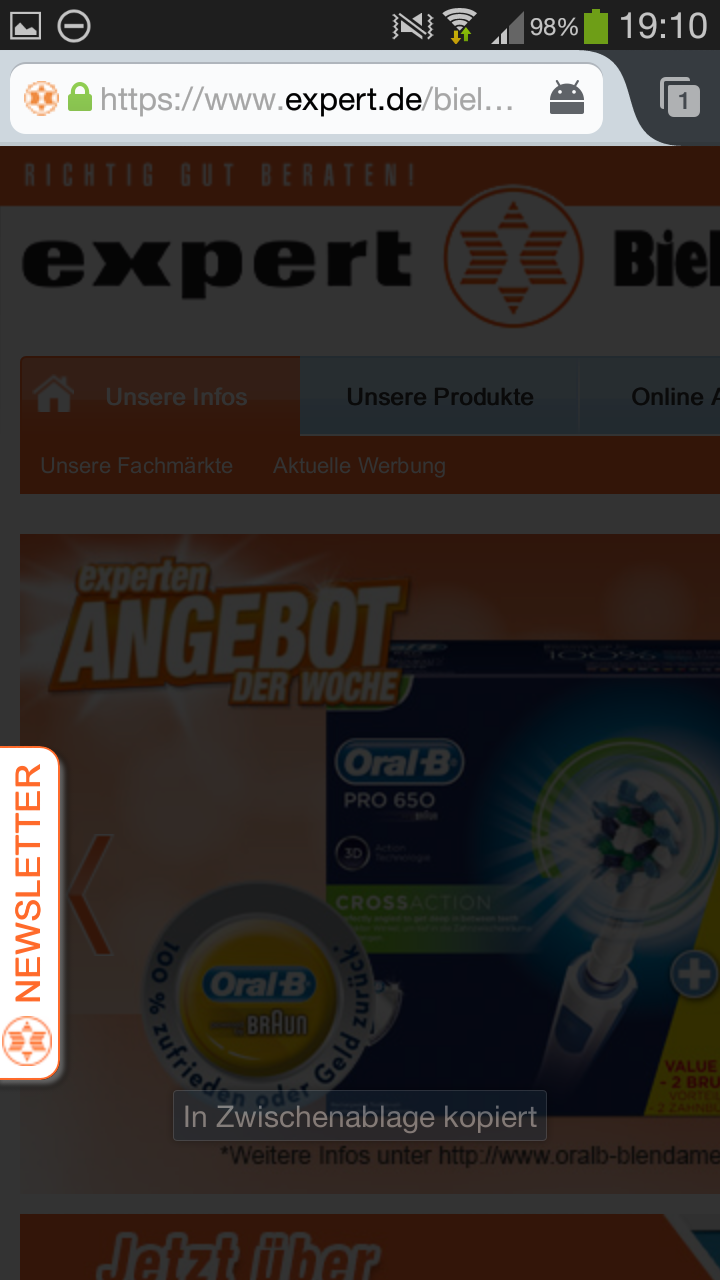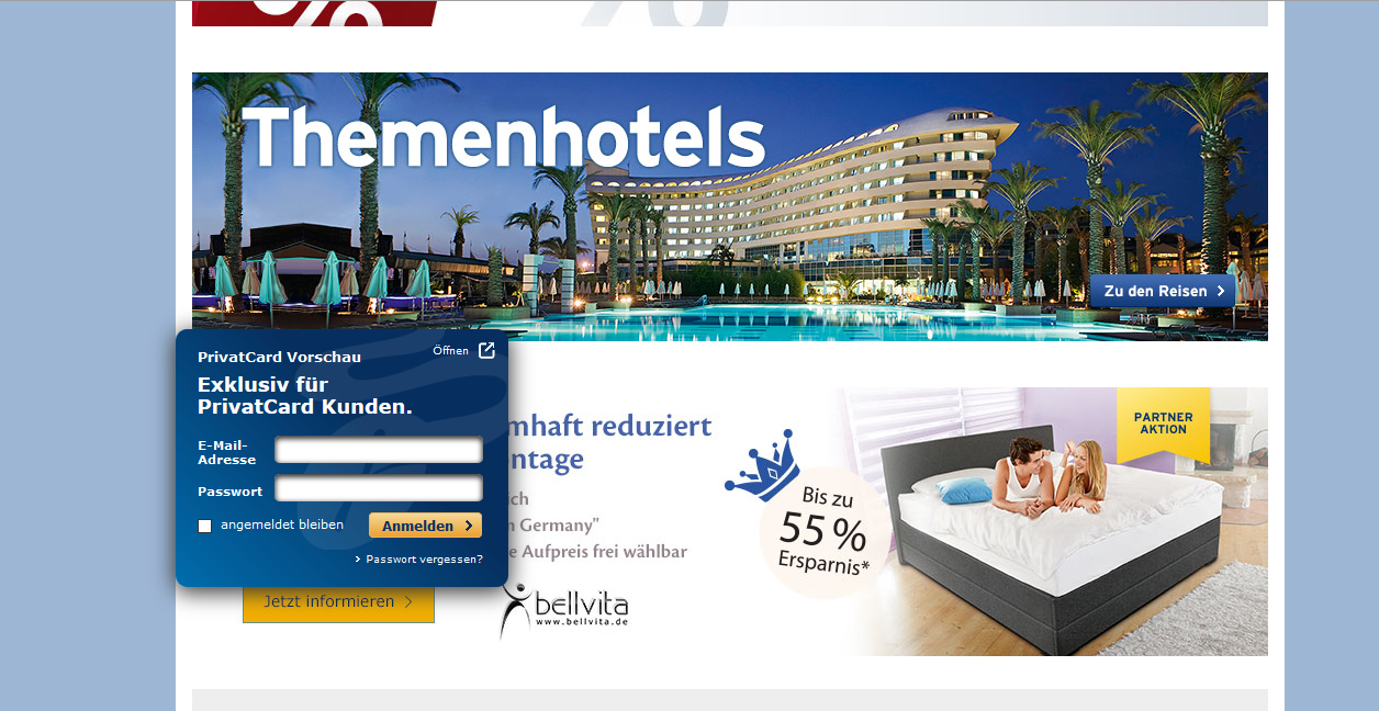 “Werden Sie Kunde! Exklusiv nur für Kunden! Angebote nur für Privatcardnutzer”. Wenn man aber keine Karte haben will, oder eine hat, sich aber nicht einloggen will (Stichwort: Datensparsamkeit), gibt es keine Möglichkeit, diese Box zu entfernen. Sie wandert mit, immer eine Sekunde verzögert. So kann man zwar einen Blick erhaschen, was dort steht, oder muss die Seite weiterbewegen, um das Sichtfeld zu verschieben. Da vergeht einem die Lust.